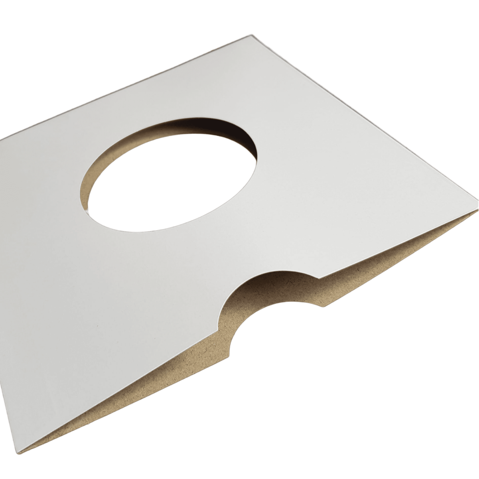 Cardboard sleeves for 45 rpm vinyl records with a quarter-circle cut-out for easy access to the record. High-quality sleeves (300 g/m²) with 81 mm double central hole. Dimensions: 183 x 183 mm. Packaging: 50 pieces, 100 pieces. Compatible with all our inner and outer sleeves for 45 rpm vinyl records.